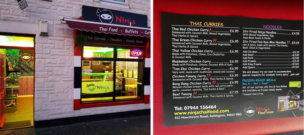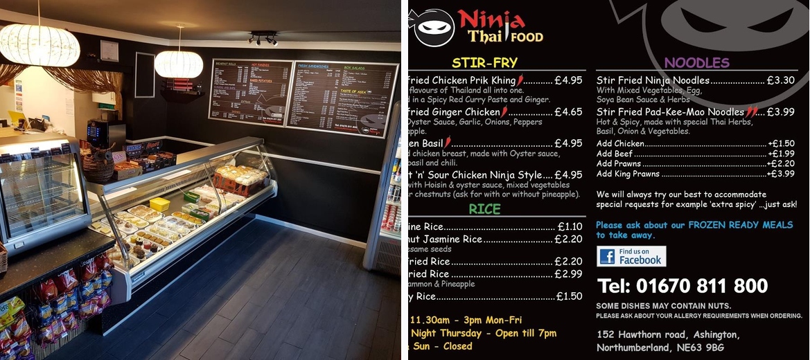 First time I have ever used Ninja in Ashington. A work friend recommended the food there. I certainly wasn't disappointed. The lovely Thai lady working behind the counter was very helpful and friendly and the food she prepared was delicious. I will definitely use them regularly. Initially I thought that the order was wrong when I got home. The green curry was not as green as I am used to but when I tasted it the flavours were perfect. The massaman was lovely and the tom yum flavours explosive. Thank you Ninja I will be back. Johnny.